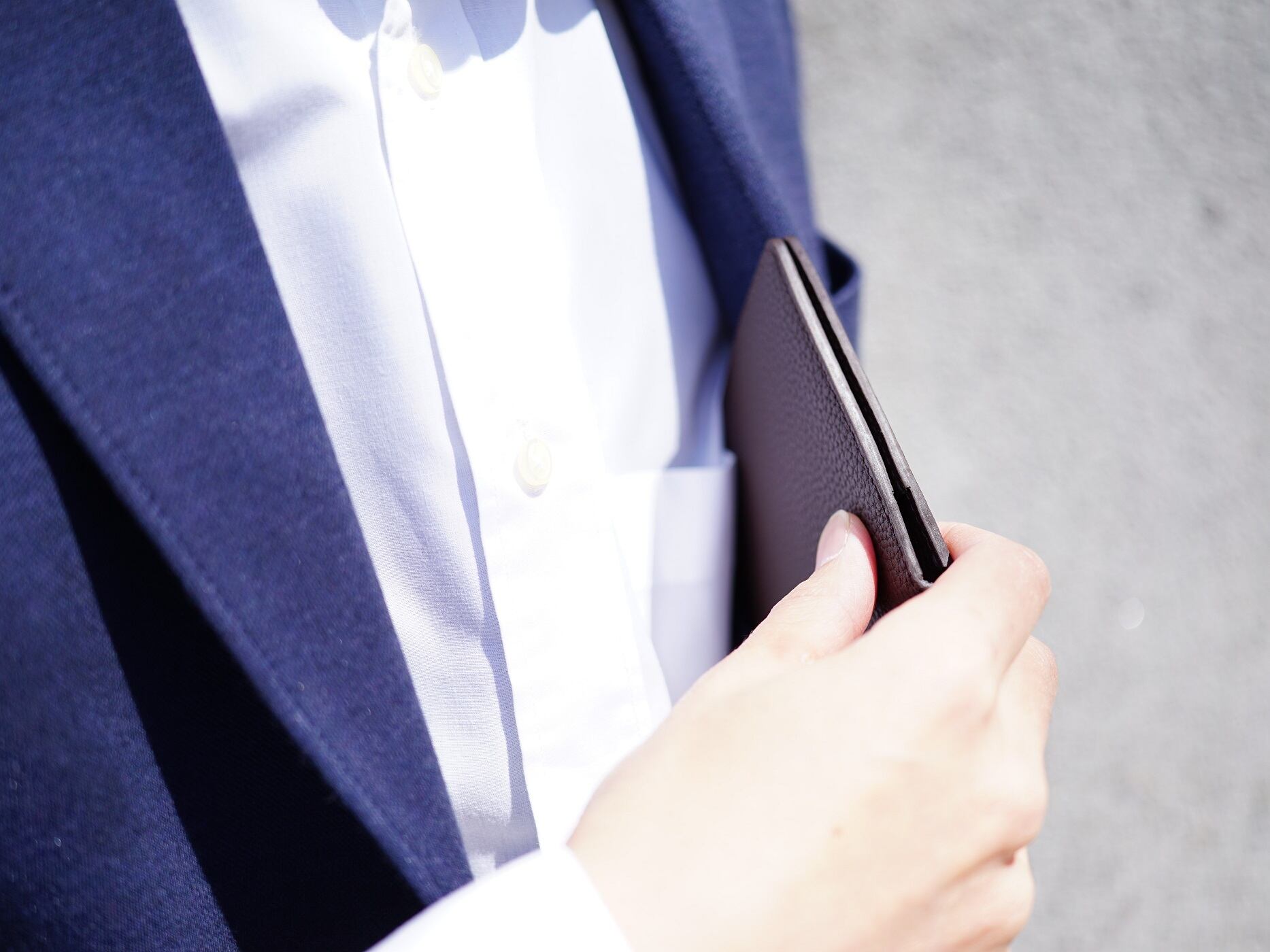 左右のカードポケットでは、少しだけ左側2枚のポケット幅を広く設定。