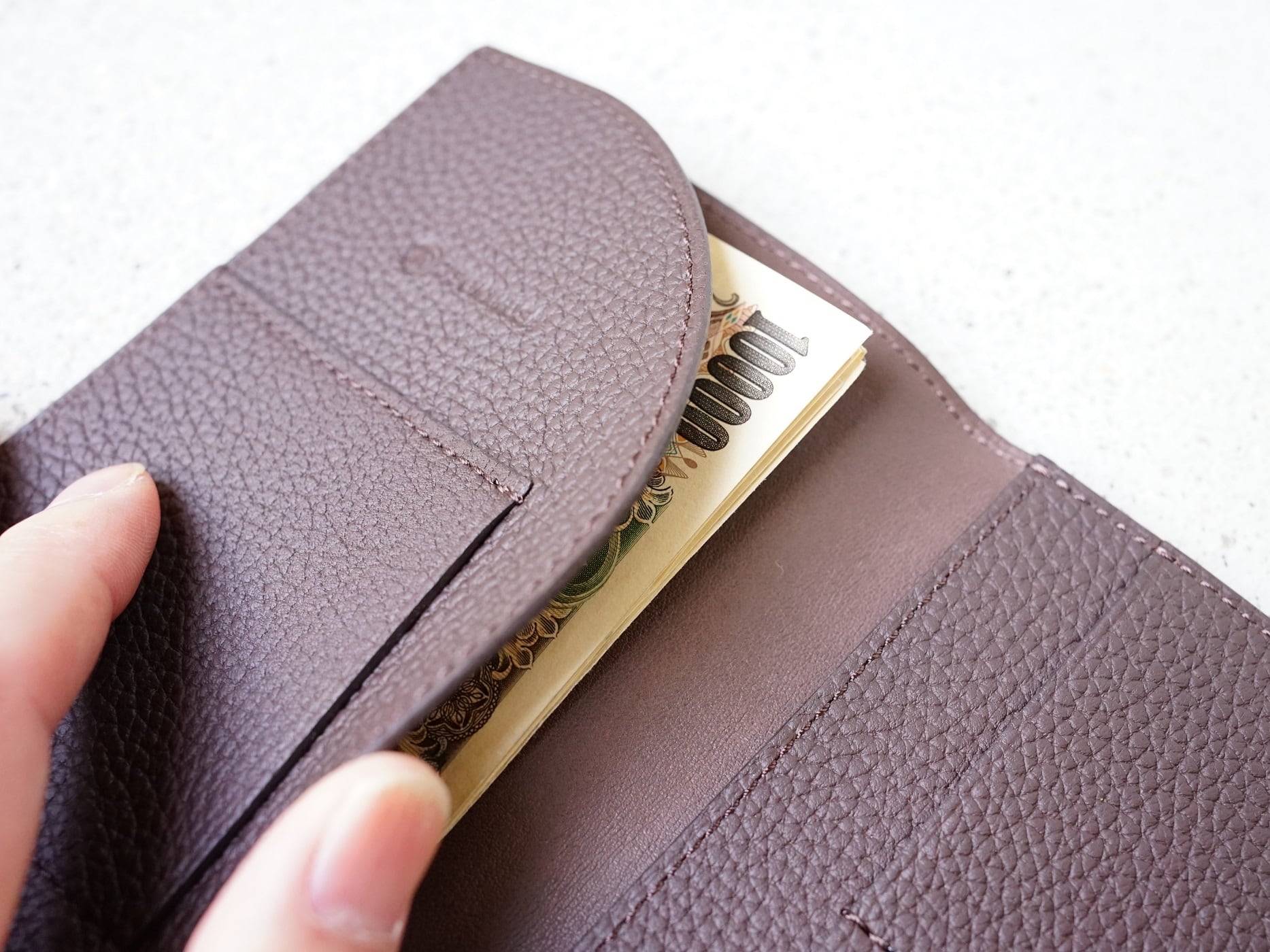 右側のお札入れ部分は、お札が余裕をもって入る幅を確保。